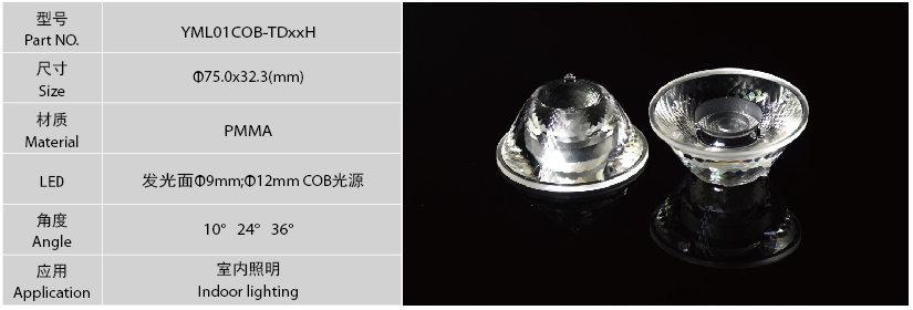 軌道燈透鏡系列料號(hào): YML01COB-TDxxH